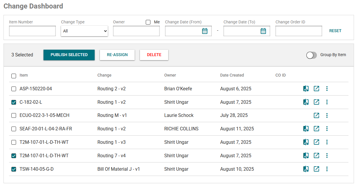 The Change Dashboard lets you manage all drafts in progress from one place. You can view changes made by everyone or just your own, reassign drafts, and publish them, all from a single location.