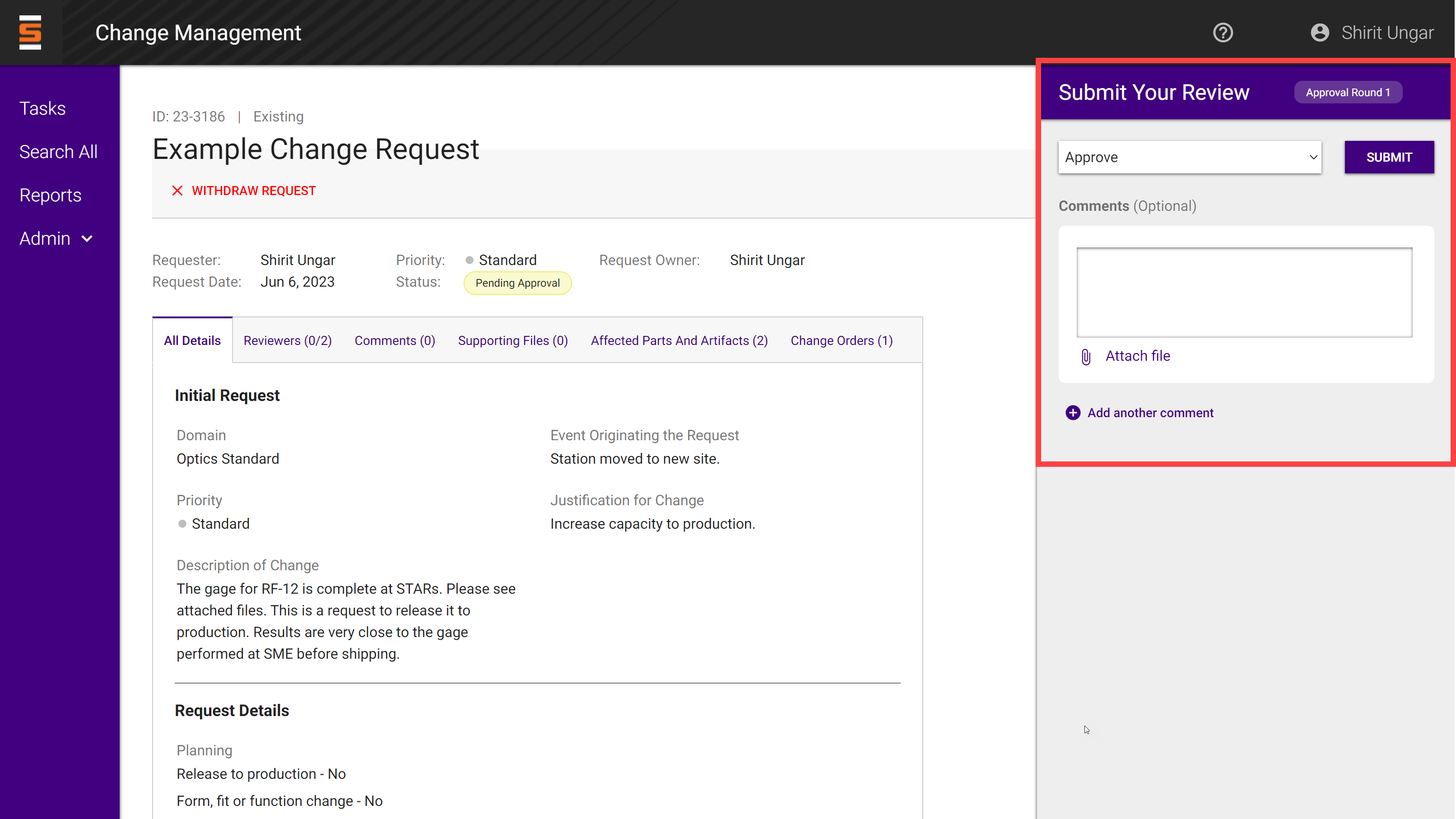 When you are in the domain's change request approval group, you will be requested to review the change request