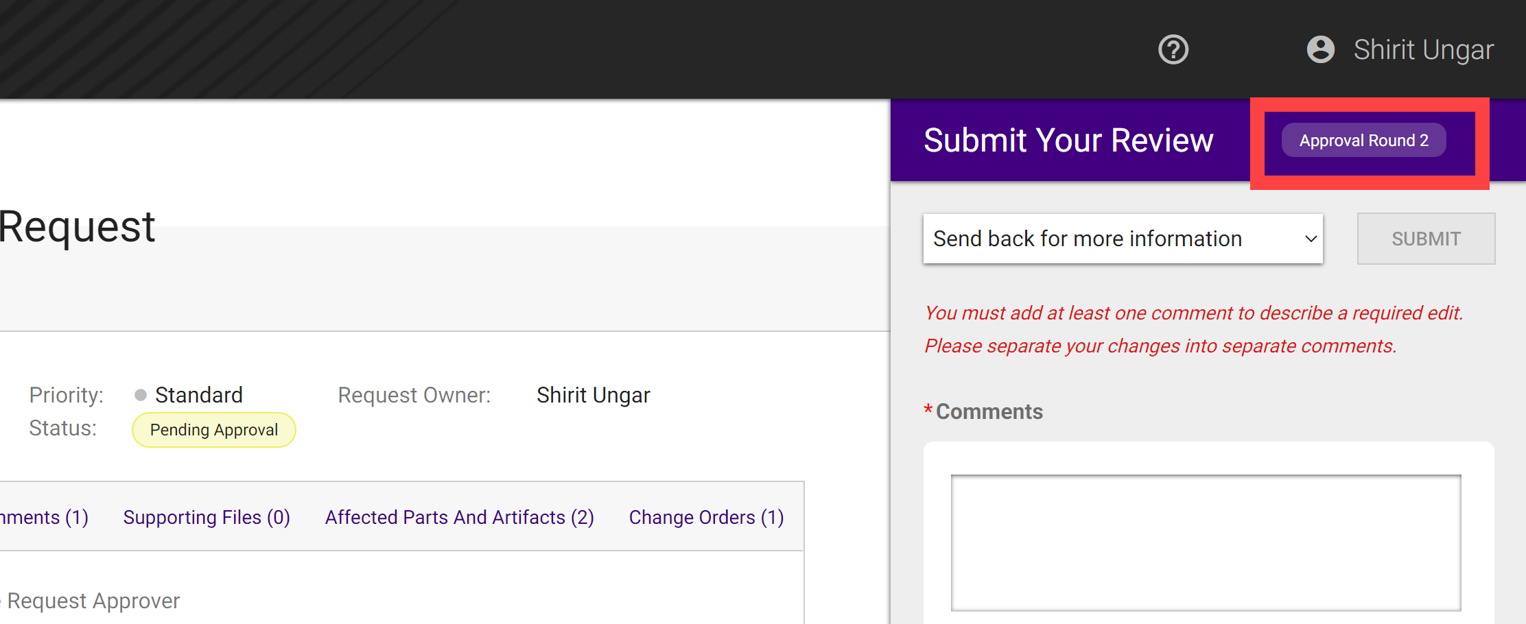 You can provide comments back to the request owner for both approval and Request Additional Information review
