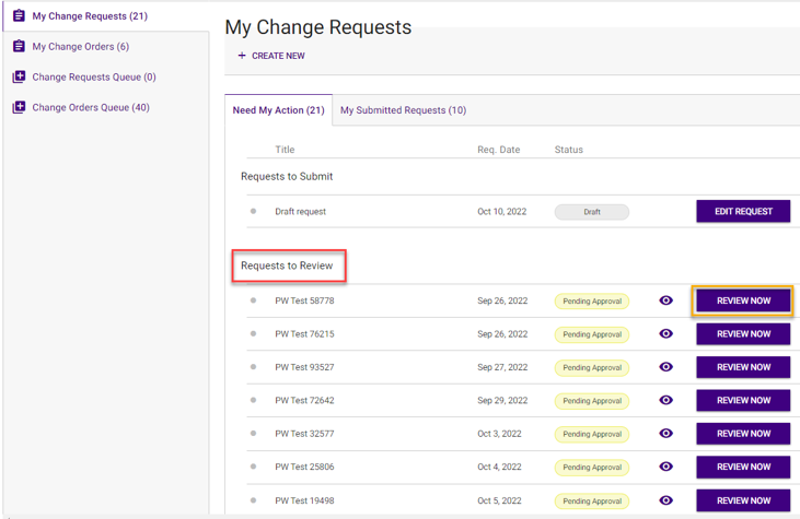 Requests that require your review will show up on Tasks page - My Change Requests tab under Need My Action