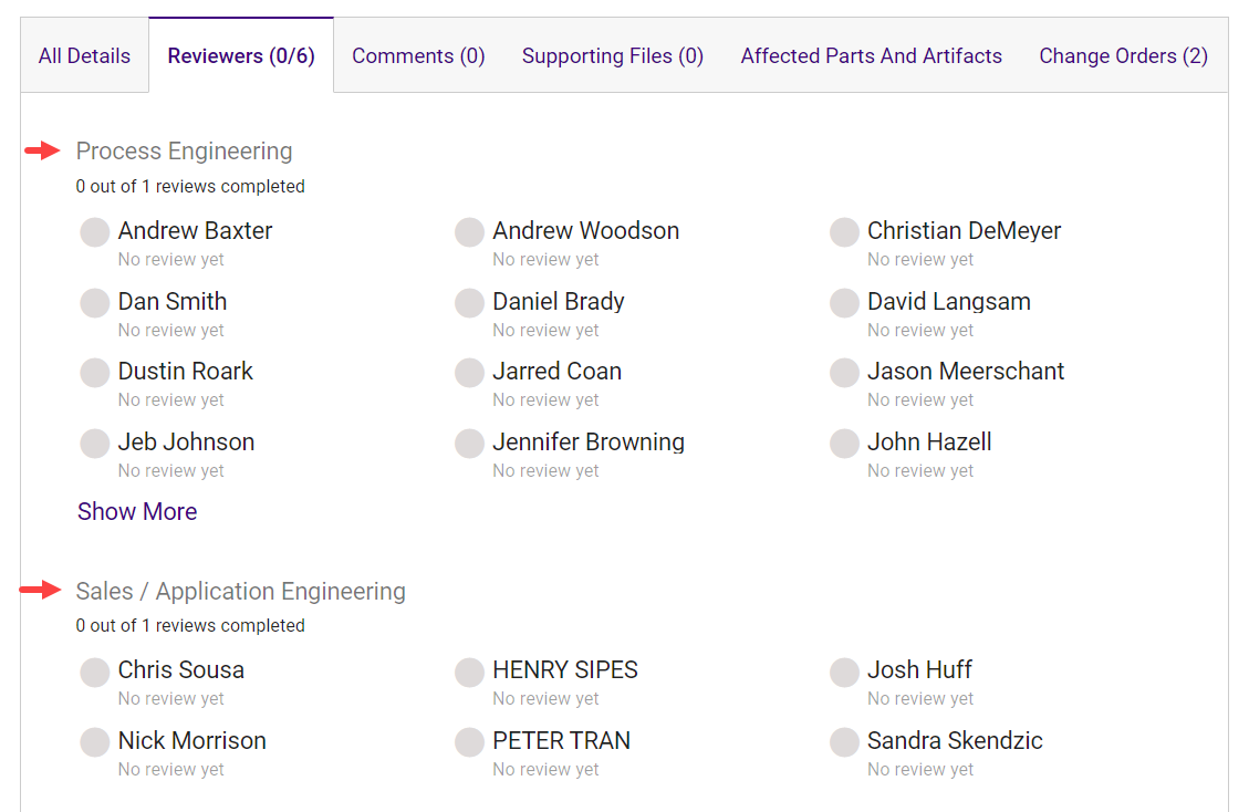 The functional groups that were selected on the request will display on the Reviewers tab along with their approval status