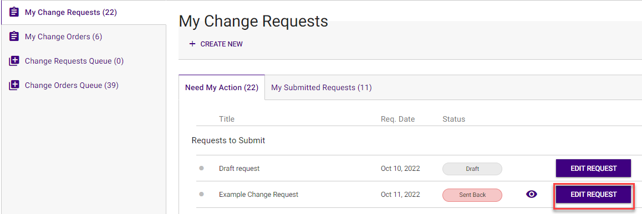 Click on the edit request to address comments from approver