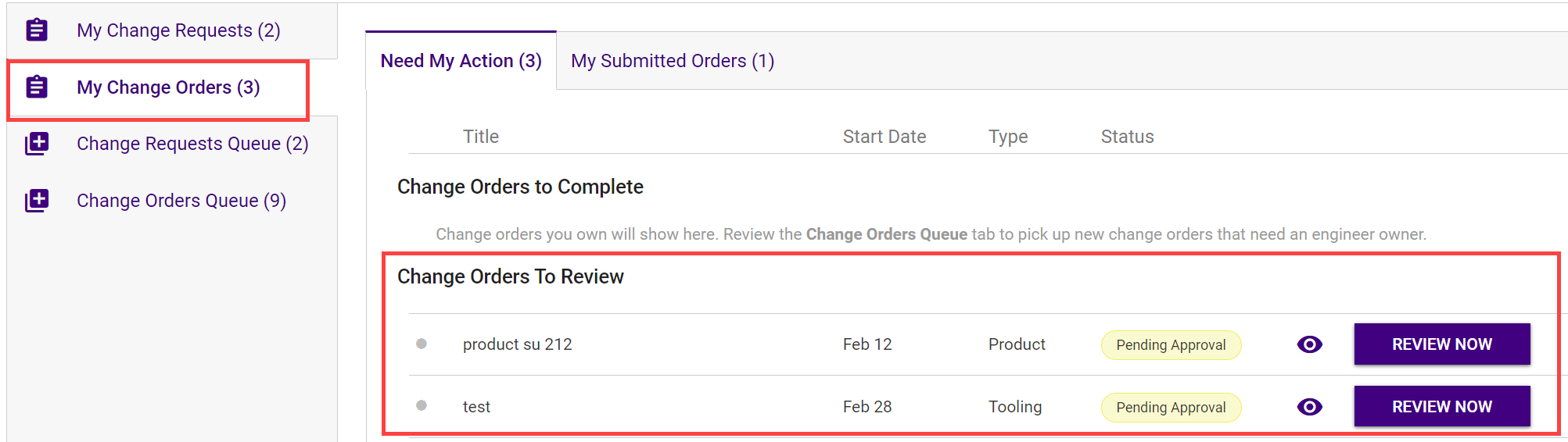 You will receive an email notification once the request owner has approved. You can also see all your pending order approvals in the Change Orders to Review section on My Change Orders on the My Tasks homepage.