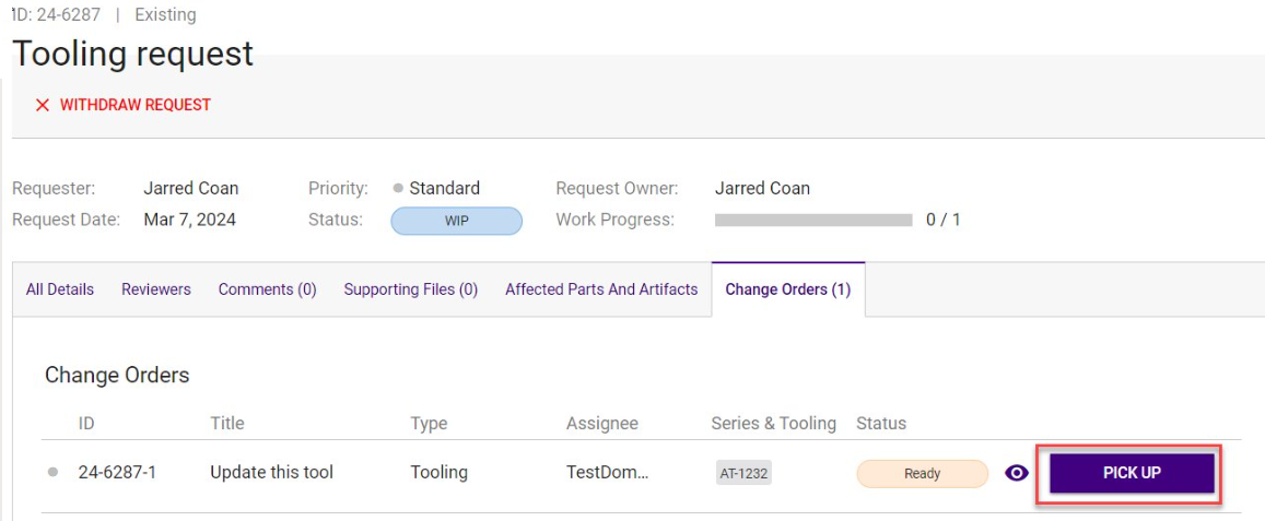 Tooling requests should require request approval so you'll see the orders where you can directly pick up the order to start work.