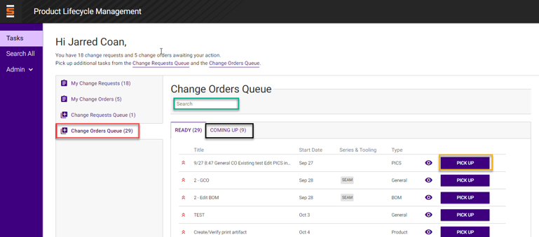 Change orders from your applicable group can be viewed and picked up from this queue.