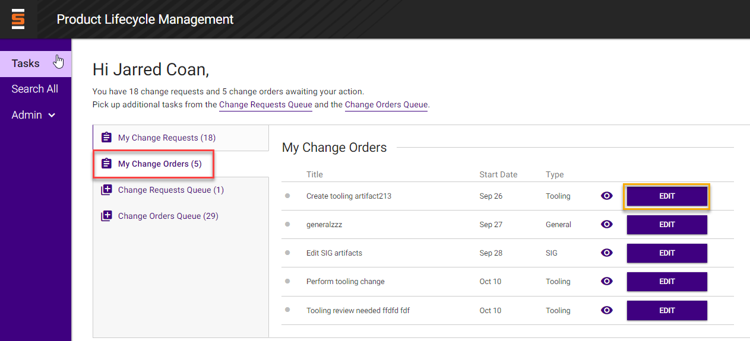 - Work Plan to submit - Displays your owned Change Requests that you need to initiate task for.