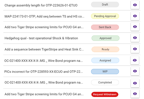 - The Eye Button - Opens the Change Request Summary Page in a side modal.