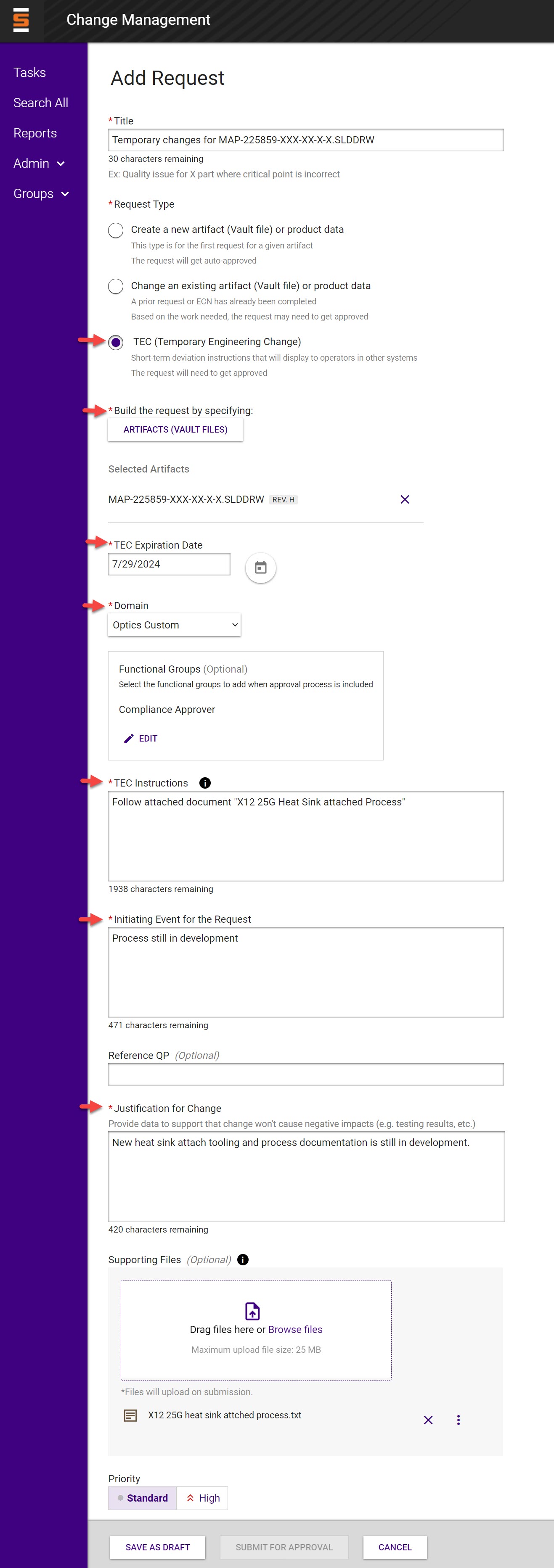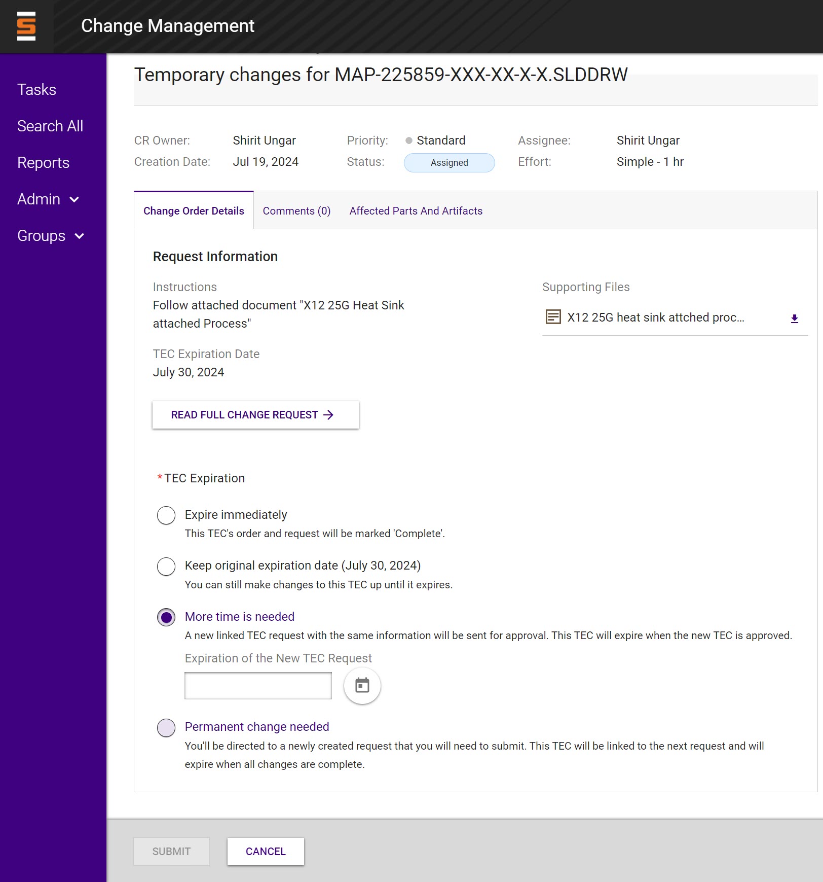 - Permanent change needed- You will be directed to create a new change request which will be linked to the current TEC. Once the newly created request is completed, the TEC will expire.