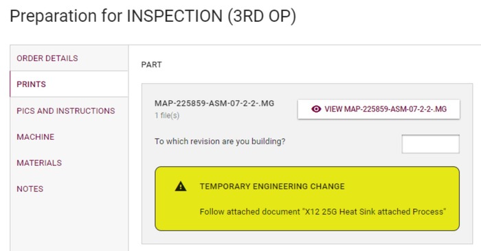 An active TEC will have the TEC instructions that were inputted in the request and display in PAWs and Shop Floor Control until it expires