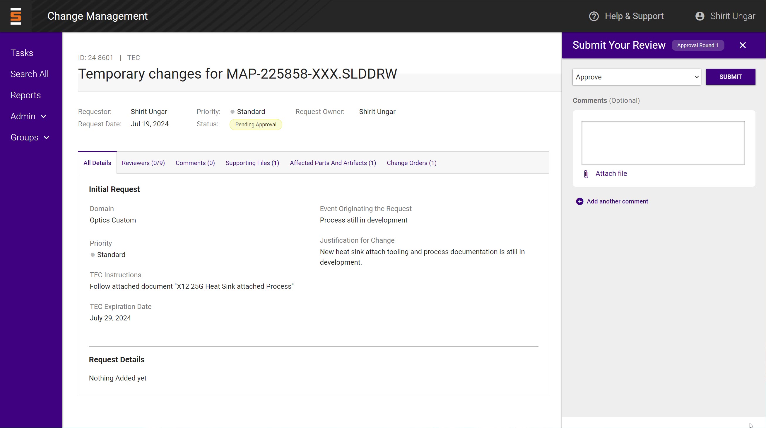 - When you are in the domain's TEC change request approval group, you will be requested to review the change request. Functional Groups may be required to approve as well.
