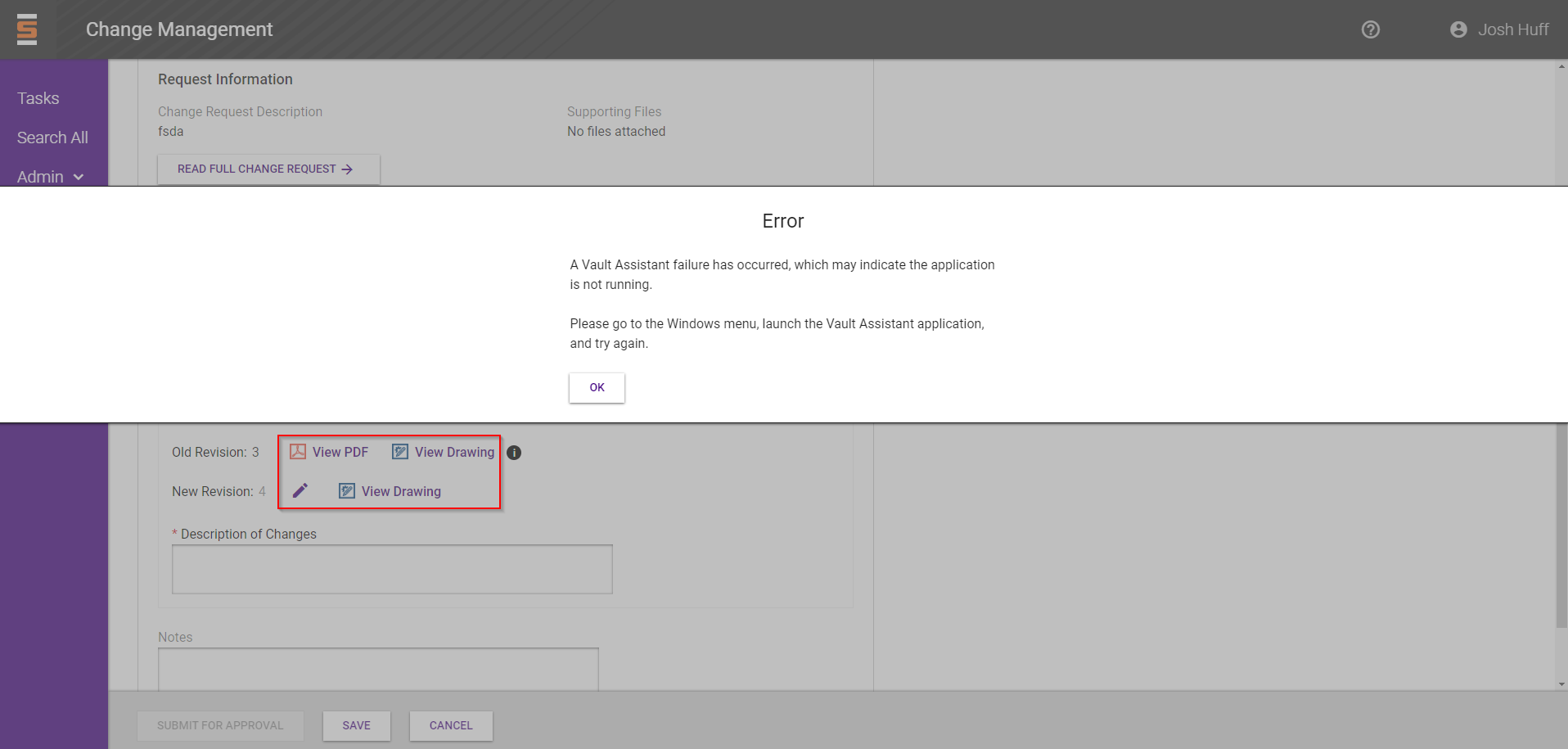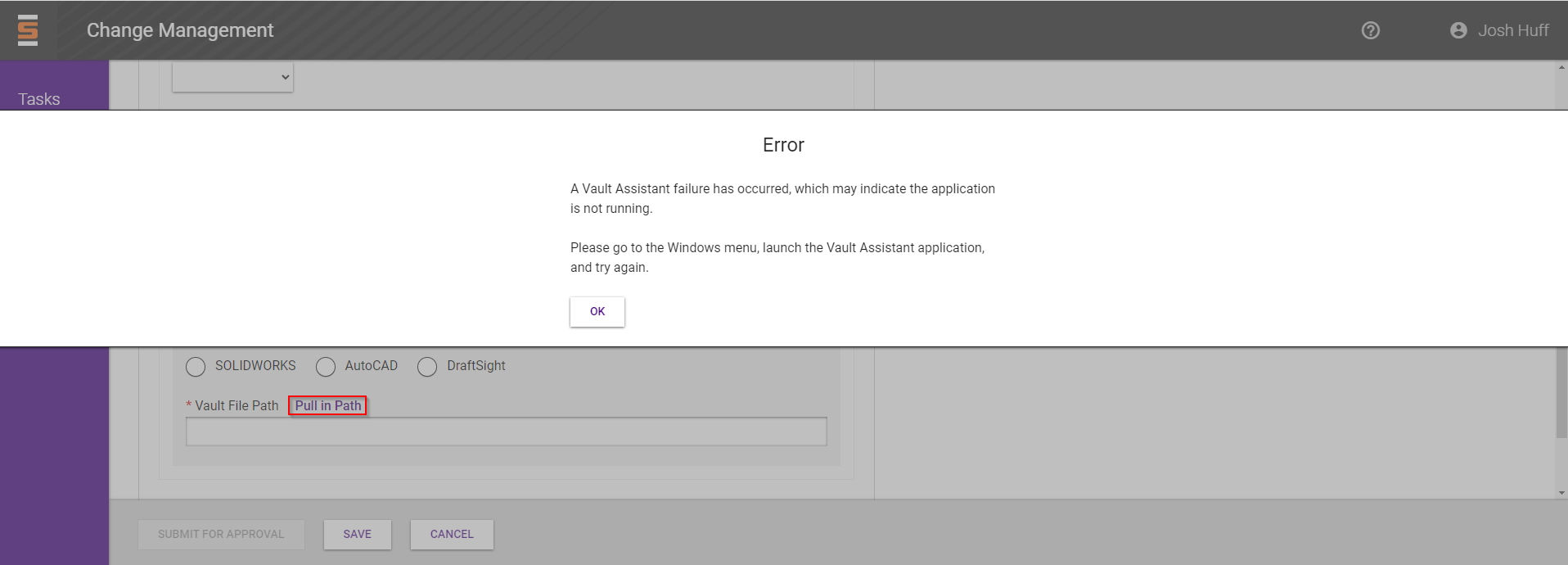 The Vault Assistant is an application installed on user machines running Windows. This app facilitates features implemented in the PLM web application. The information below provides a basic guide toward troubleshooting.